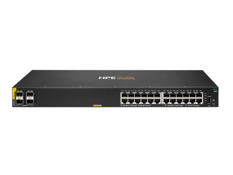 Detailed product description The HPE Aruba Networking CX 6100 Switch Series is modern family of entry level access switches ideal for enterprise branch offices and SMB networks.